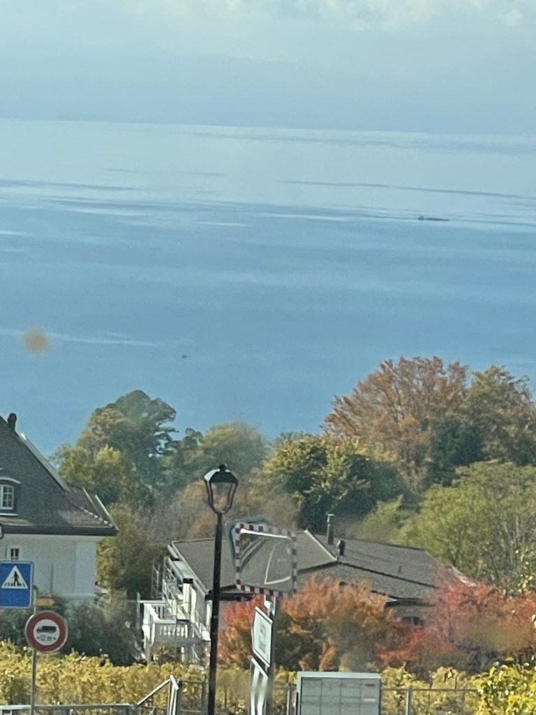 Bon après un bircher, un jus d’orange c’est reparti ! Et donc nous descendons en ascenseur jusqu’au rez coutance, puis part en direction de là où nous étions venus, vu qu’il y avait un chantier les rails du tram sont en train d’être changés… Et donc il s’est dit bon que je pouvais faire un pipi…. J’étais pas chaud… Donc nous avons descendu la rue Rousseau où j’ai fait un pipi. De nouveau au harnais, nous continuons à pied, traversant également le Pont de la Machine pour arriver de l’autre côté en vieille ville… Ah je connais cet endroit !!! C’est Payot on est déjà allé… J’y fonce… Patrick se dit : – bon en attendant le tram pourquoi pas regarder ce qu’il y a de neuf… Puis nous sommes ressortis pour attraper le tram 17 qui nous a mené jusqu’à l’arrêt industrielle où nous avons changé pour le tram 15 qui nous a laissé à Grand-Lancy Place et nous avons tenté de prendre un bus mais celui ci était sans passager… Donc nous avons attendu un moment pour sauter dans le bus 22 en direction de Ziplo puis deux arrêts plus loin nous sommes descendus… On va à droite suivant la foule puis vu que les voitures étaient toutes à l’arrêt nous avons traversé ! Il a remercié une automobiliste qui l’attendait…